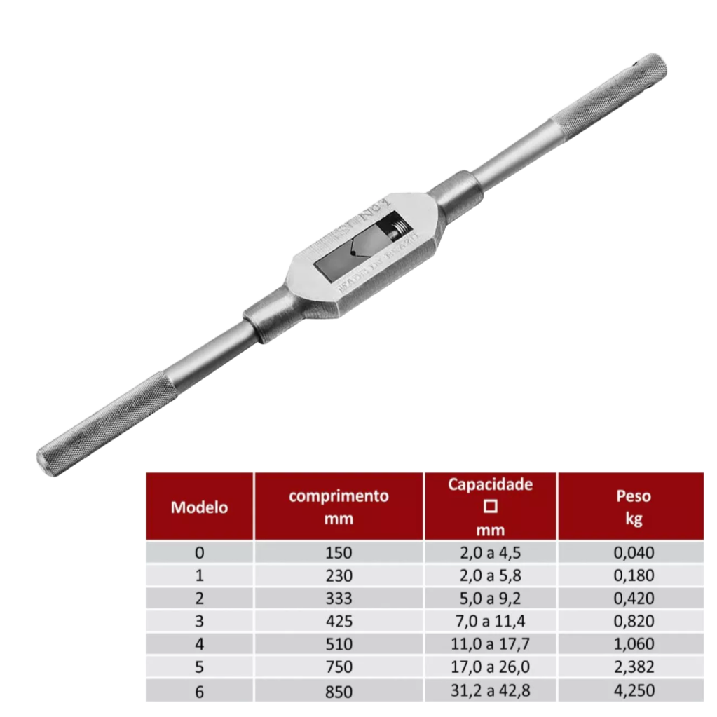 Ferramenta especializada para girar machos e alargadores.